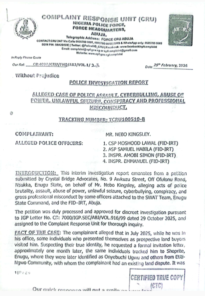 An investigation into the conduct of the Nigeria Police Force’s Intelligence Response Team (IRT) and Special Weapons and Tactics (SWAT) unit has exposed severe allegations of brutality against a businessman in Enugu State.