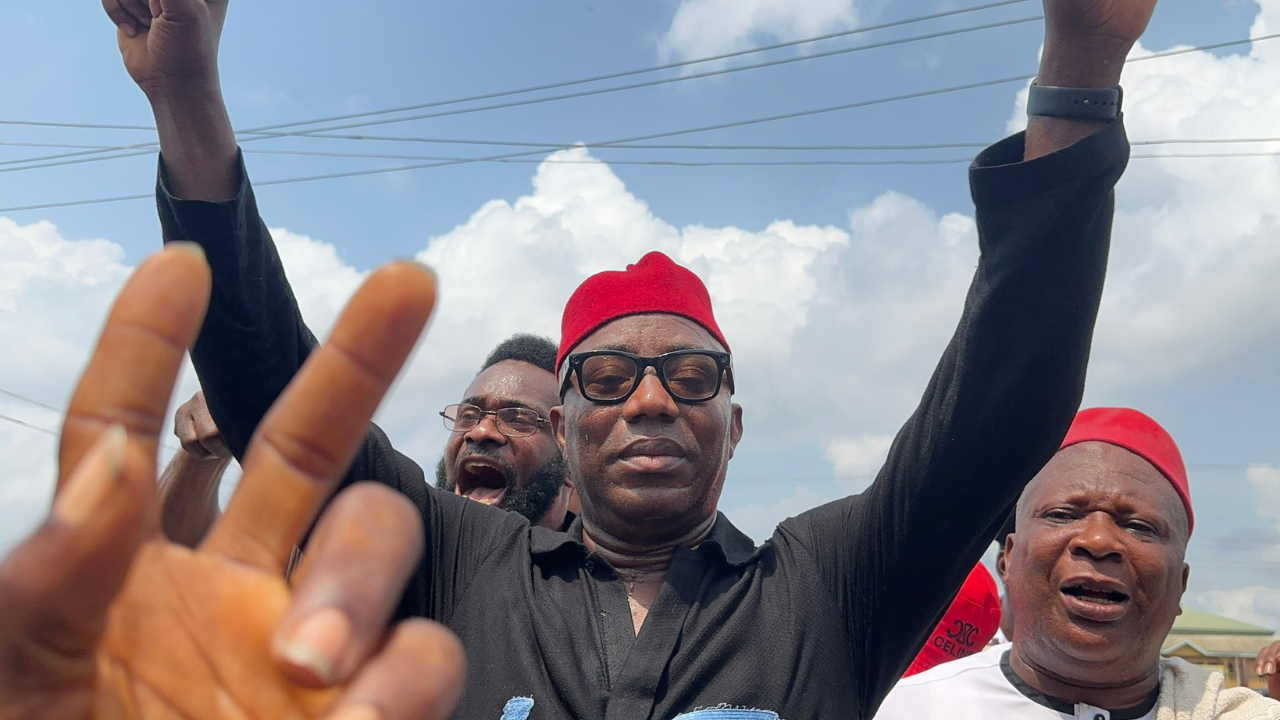 - The Protest in Aba: Despite the alleged interference, the rally in Aba saw thousands of protesters take to the streets to demand Kanu’s release. Protesters carried placards reading “Release Kanu” and “No to Life Imprisonment under Dead Laws.”
